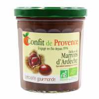 Ingrédients : Purée de marrons d’Ardèche *, sucre de France*, acidifiant : jus concentré de citron *, gélifiant : pectine de fruits, extrait de vanille Bourbon*.